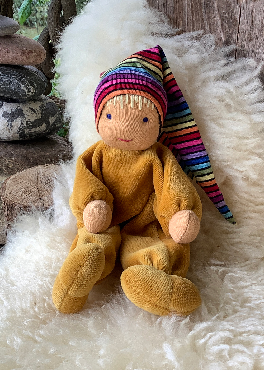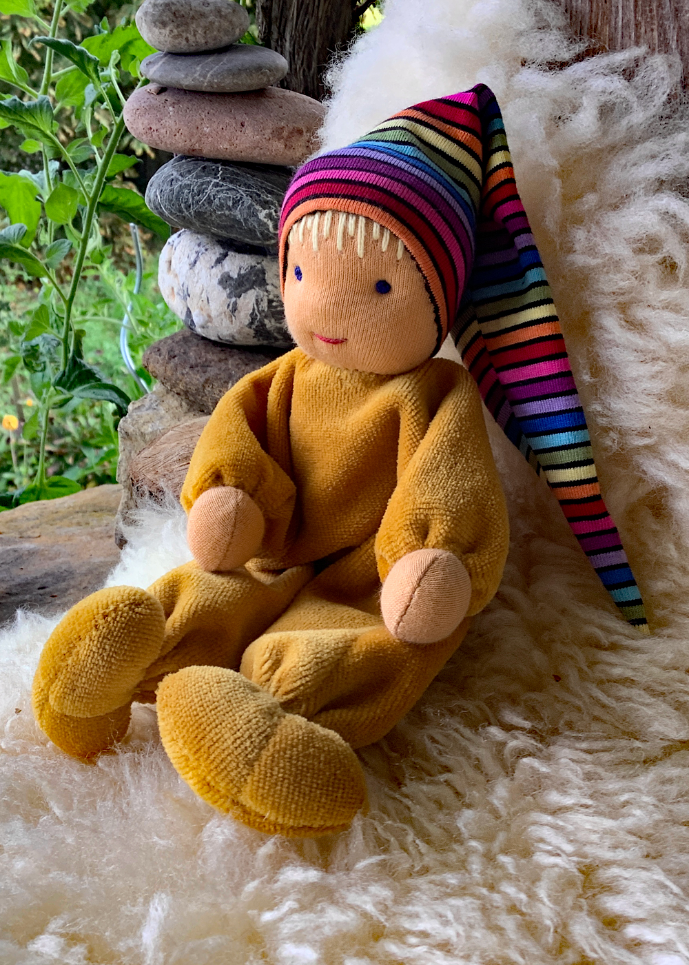 Minipüppchen nach Art der Waldorfpuppe gelb , das Material: