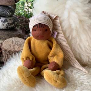 Diese Püppchen sind auch für Neugborene geeignet. Durch die besonderen Anfertigungsweise, bei der Arme und Beine nicht befüllt werden, sind sie sehr weich und kuschelig. Größe: ca 20cm (ohne die Zipfelmütze)