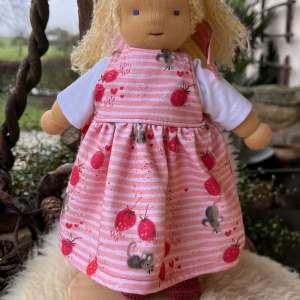 Dieses Puppenkleider Set Kleidchen in Rot paßt den kleinen Puppen der Größe 28-30 cm.